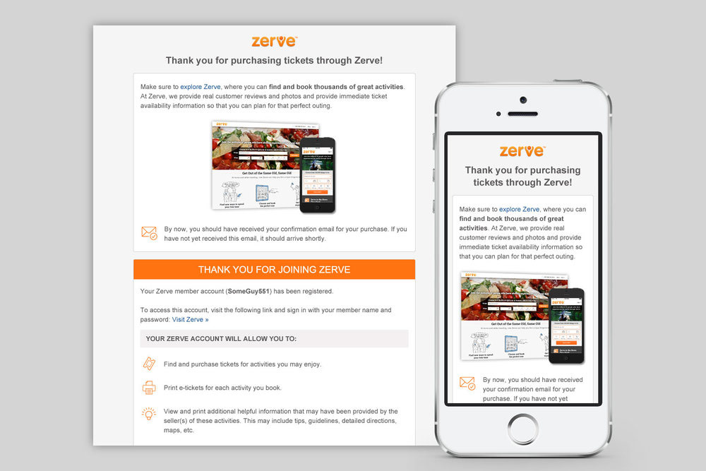 Example of the responsive “Welcome” email template that introduces consumers to Zerve’s offerings and services
